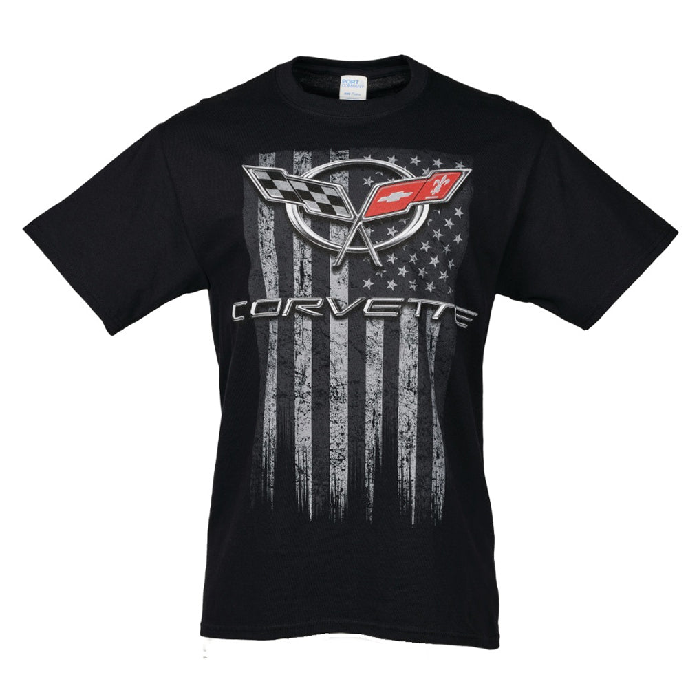 Striking C5 Corvette with flag logo softly screen printed in full color over a subtle American Flag.