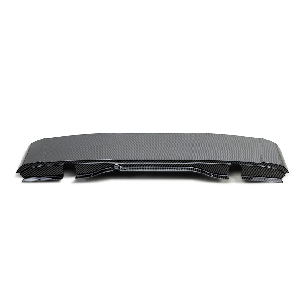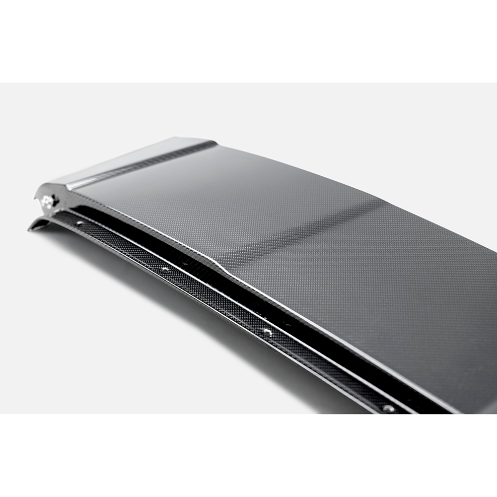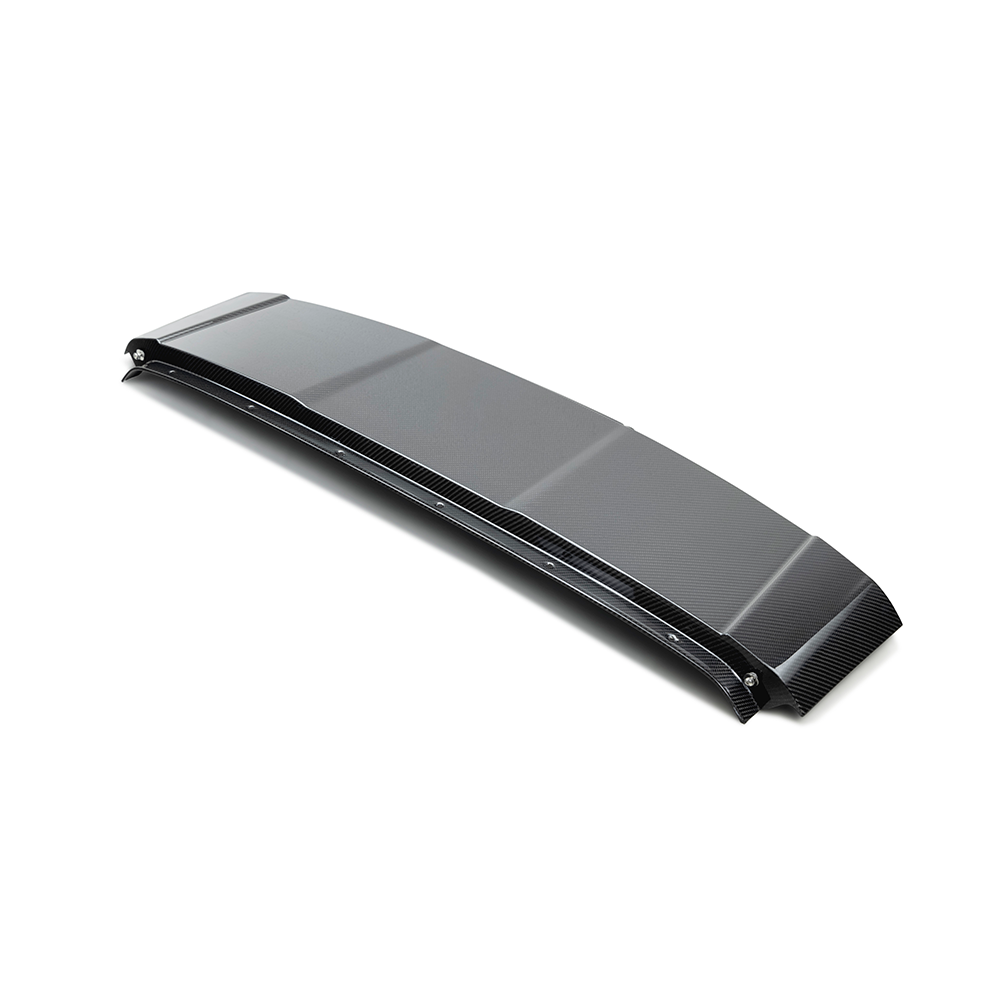 This rear roof panel replacement is constructed with 3K, 2x2 twill carbon fiber cloth that has been autoclaved with a glossy finish. OE hardware is necessary for mounting, however, weather stripping and related hardware must be transferred from the original OEM rear roof panel. For best results, Professional installation is highly recommended.