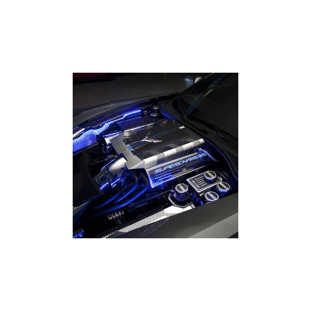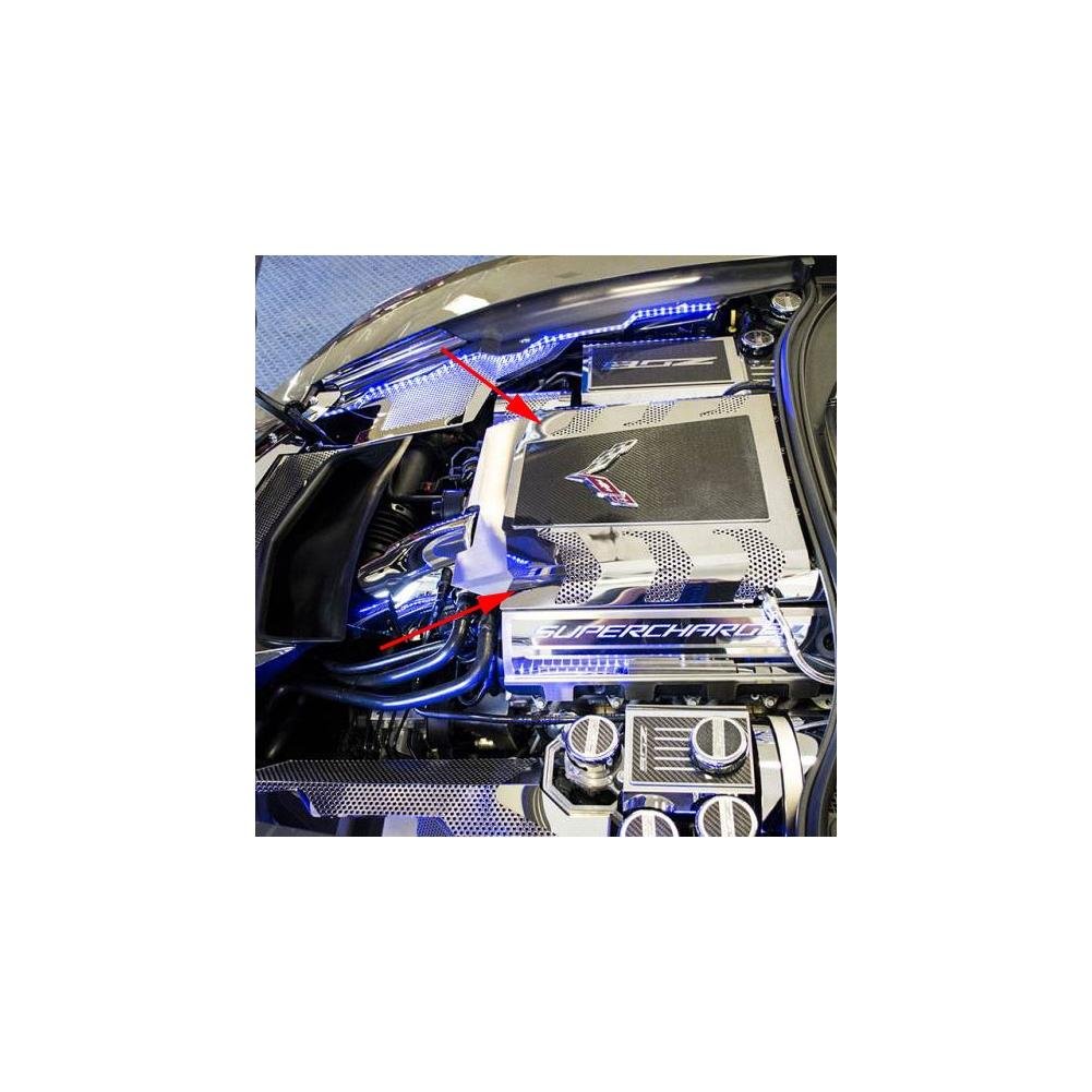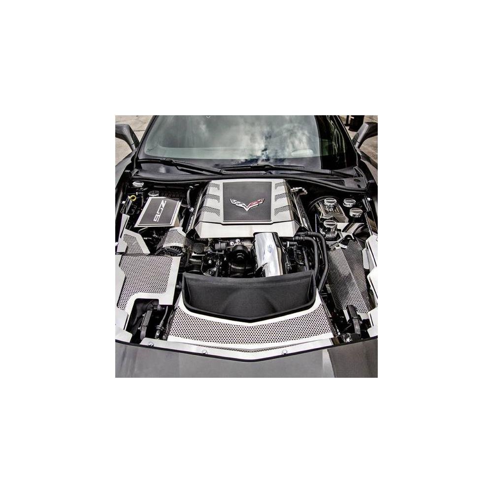 High-style engine cover with carbon fiber center accent. Customize your 2015-16 C7 engine with our Z06 Engine Shroud Cover. This stainless cover features a carbon fiber center plate, polished stainless shroud, and brushed metal under-plate. Made from the highest quality materials, this cover will elevate the look of your Corvette engine to a first-class professional level. It's a breeze to install, you can easily do it yourself. Handmade in the USA.