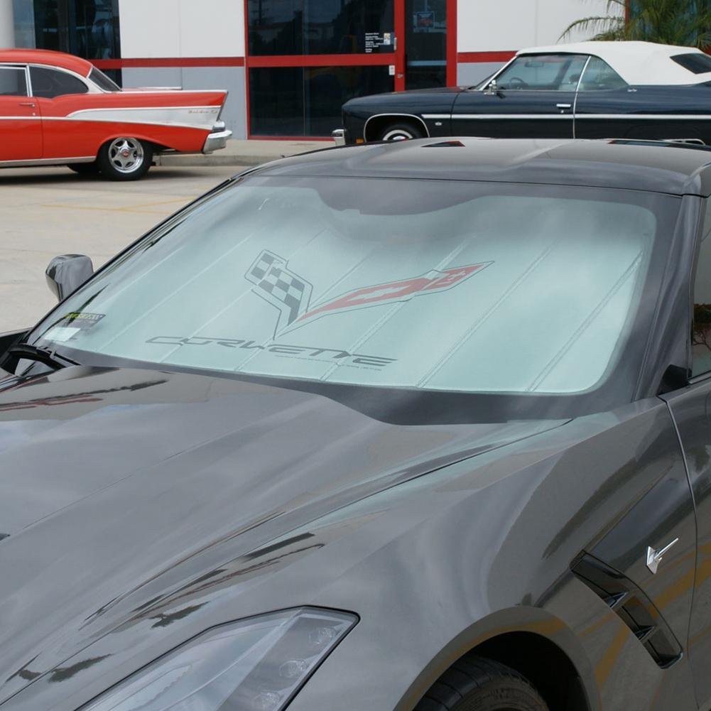 Corvette Logo Accordion Style Sunshade - Insulated Silver : C7 Stingray, Z51, Z06, Grand Sport
