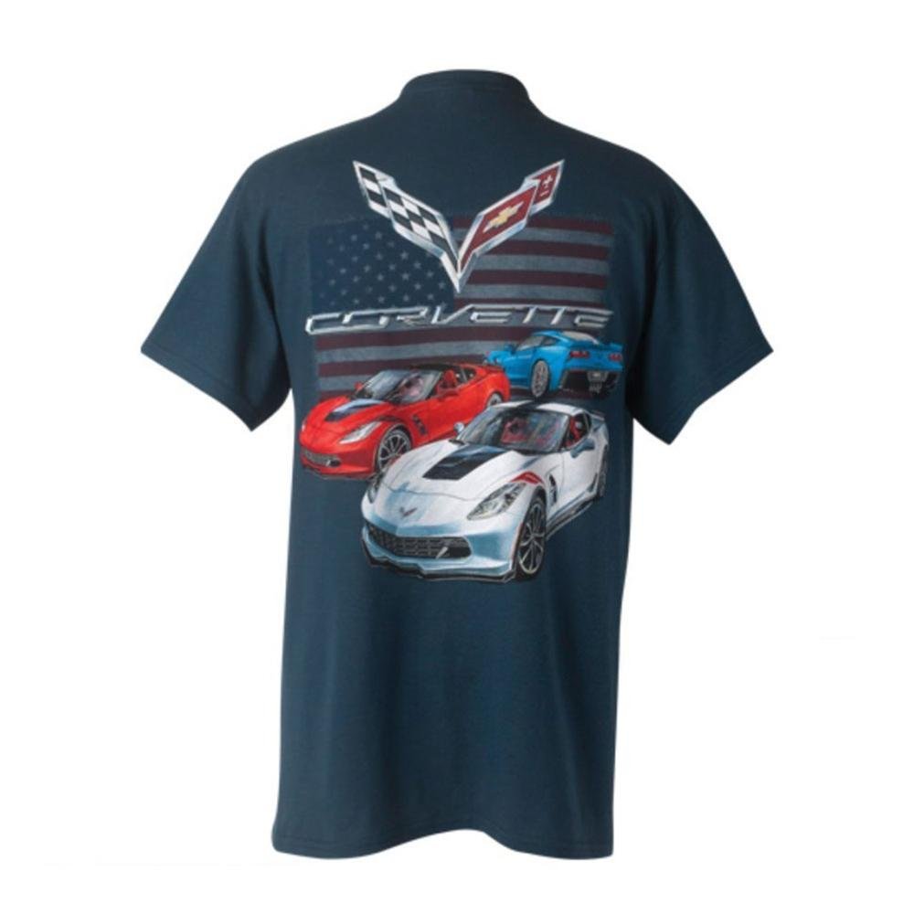 Corvette USA American Flag Tee Shirt - Blue : C7 Grand Sport