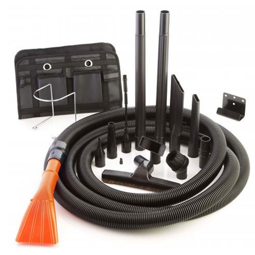 Accessories include a Wall Mounting Bracket, 30 foot x 1.5” Commercial Quality Car Wash Hose, Car Was Quality 1.5” “Claw” Upholstery/Carpet Tool, 1.5” Crevice Tool, 2-20 inch Extension Wands, Micro Detailing Attachments, Shoulder Strap, Blower Nozzle, Floor Brush, Inflator Adapter, Pik-All Upholstery Nozzle, Dust Brush, Hose Bracket, Attachment Holder, and 3 Disposable Paper Bags, and 12 foot Grounded Cord.
